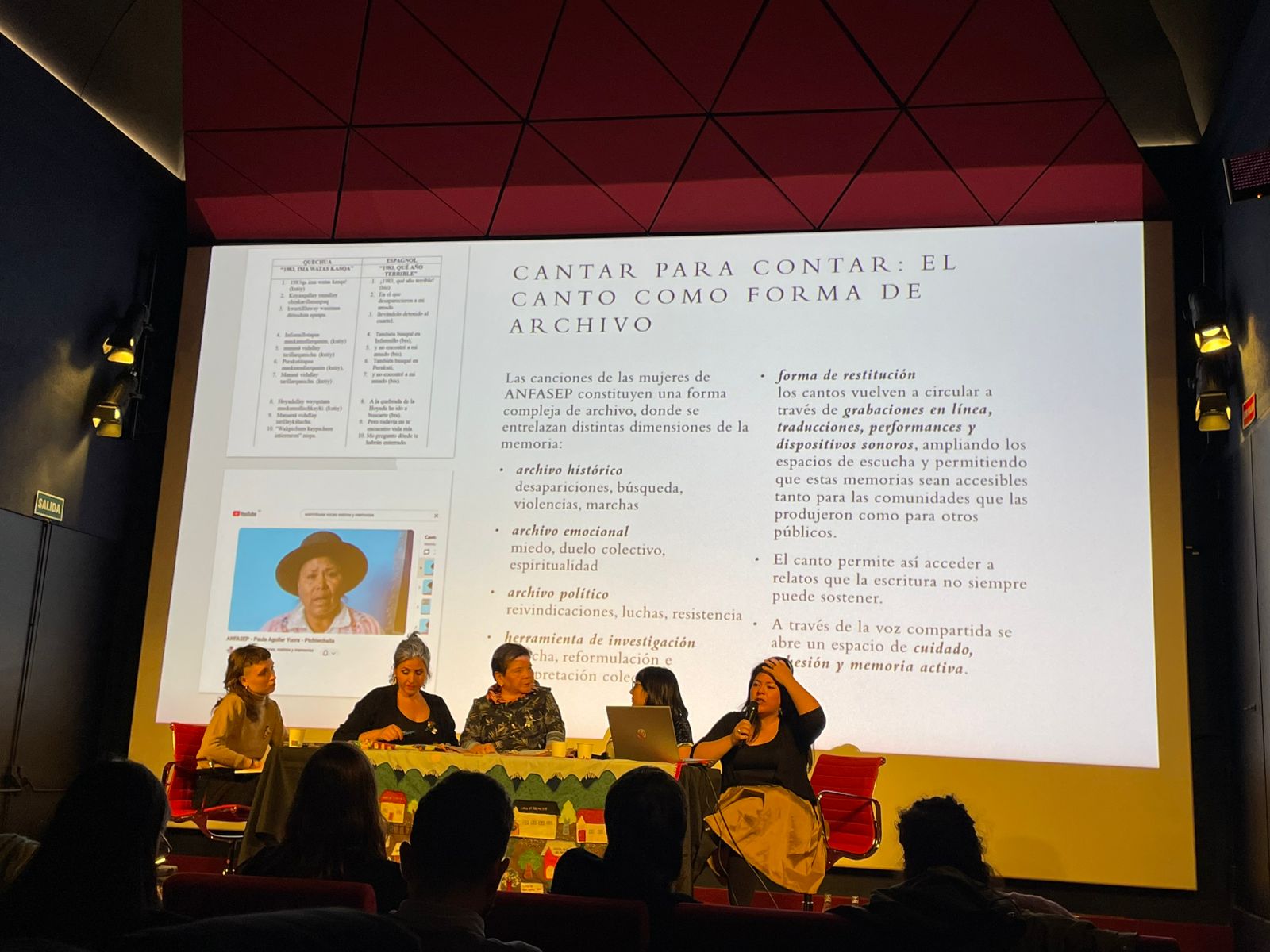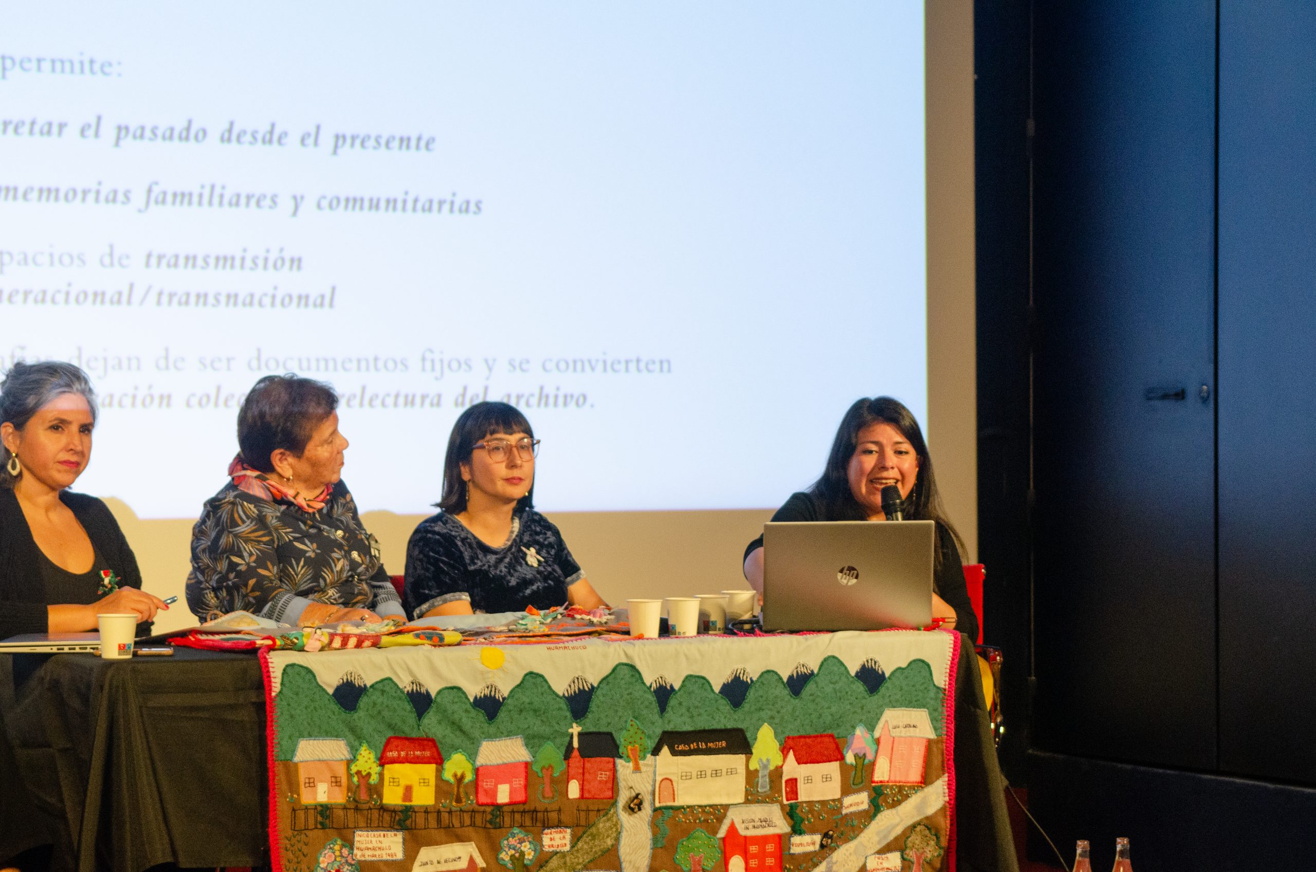 —Mesa redonda con Aída Moreno e Ivette Quezada (Casa de la Mujer Huamachuco) y Tania Romero Barrios (Warmikuna – voces, rostros y memorias). Acompañan Lucía Bianchi y Marjolaine David Briand