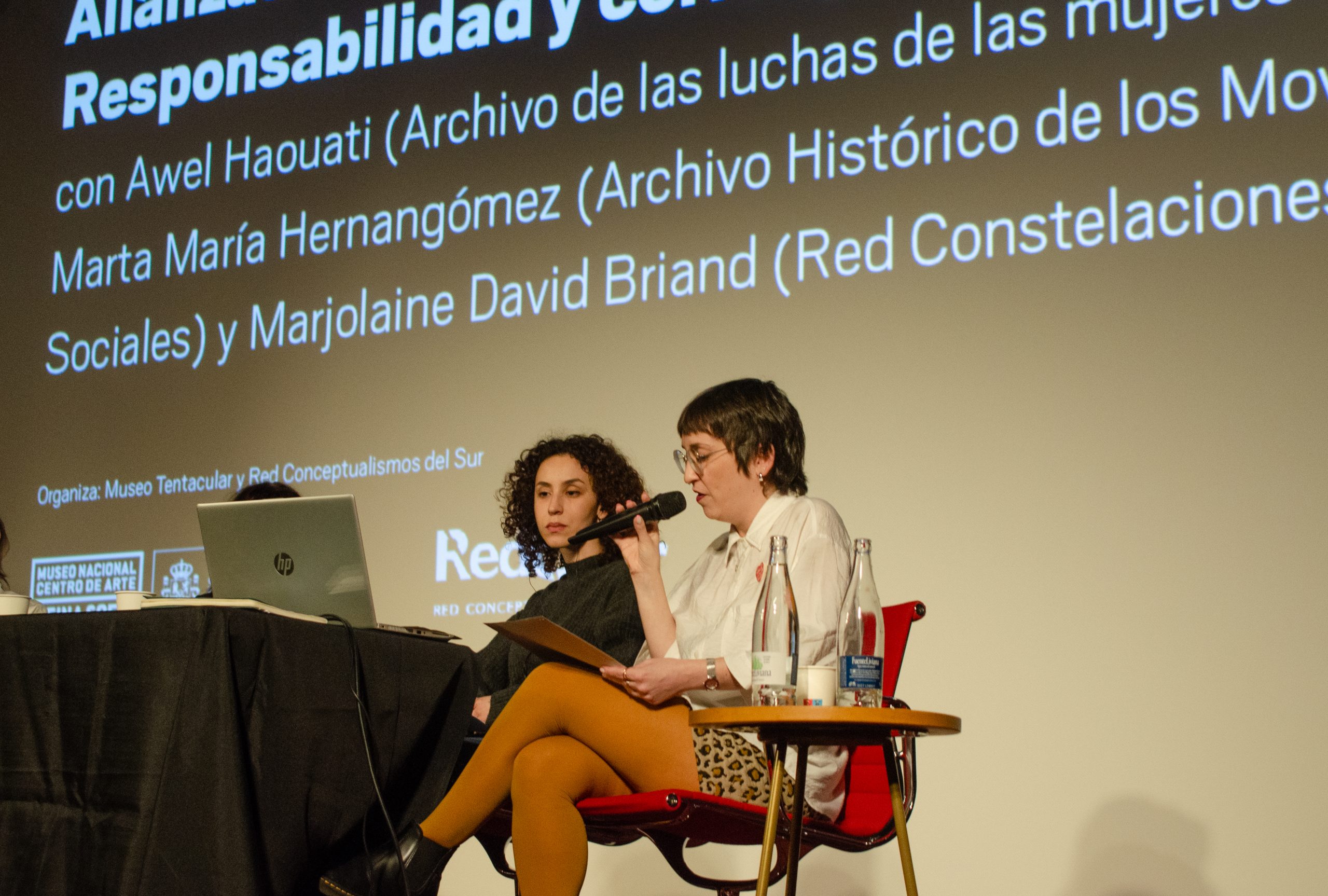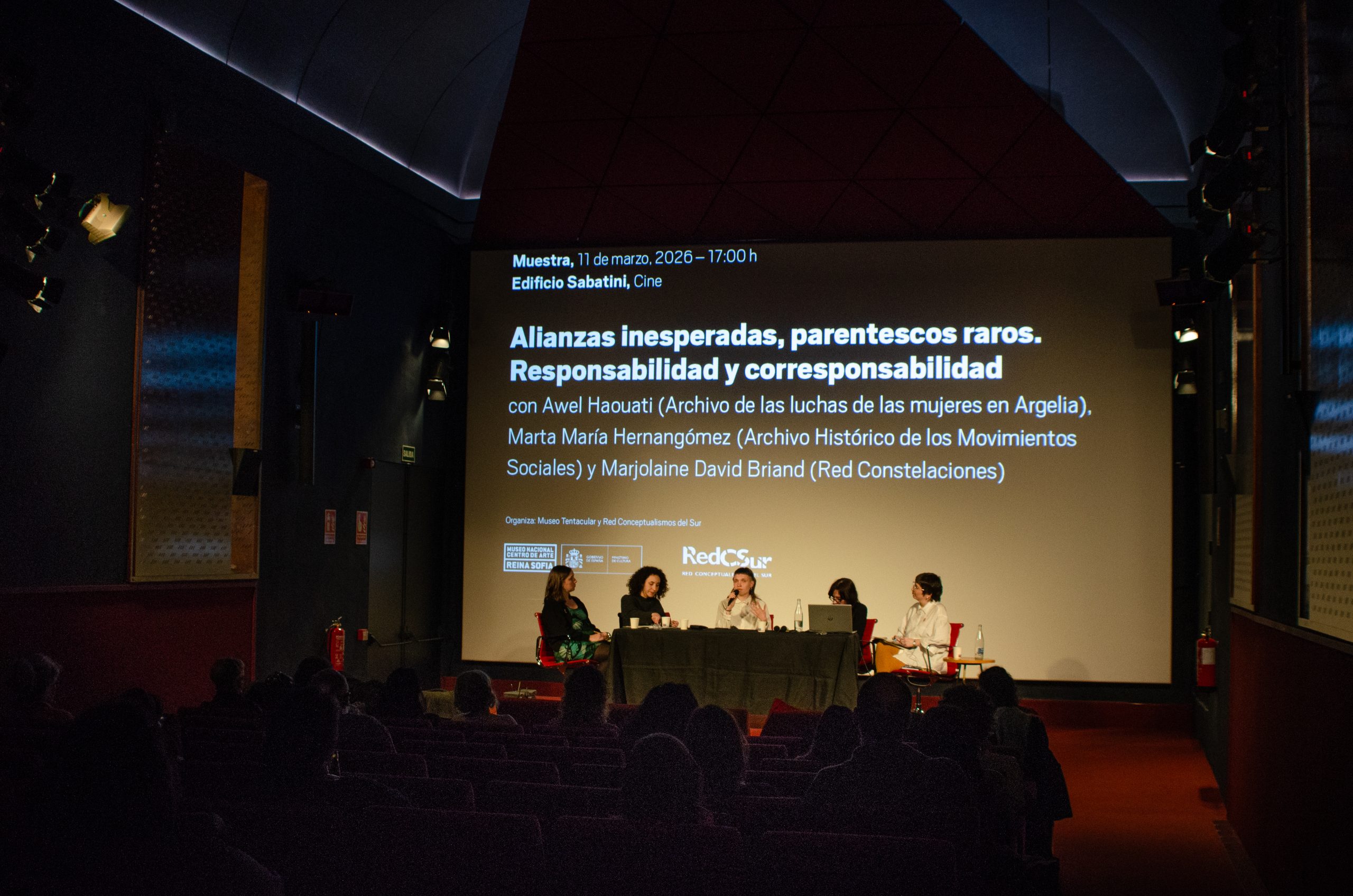 —Mesa redonda con Awel Haouati (Archivo de las luchas de las mujeres en Argelia), Marta Hernangómez (Archivo Histórico de los Movimientos Sociales) y Marjolaine David Briand (Red Constelaciones). Acompañan Sara Buraya Boned y Lucía Cañada